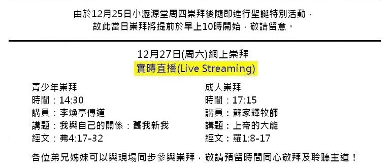 網上崇拜(2025年12月27日)